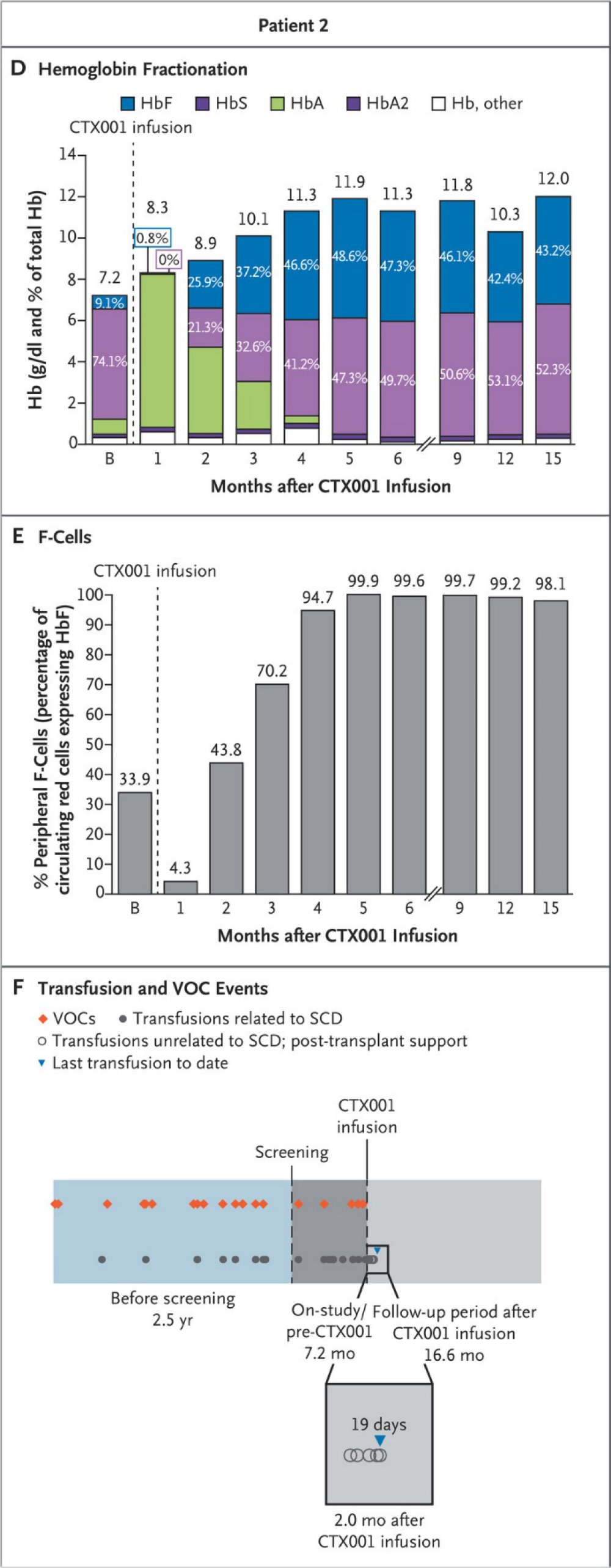Patient2 Frangoul Evolution de la quantité totale d’hémoglobine du sang