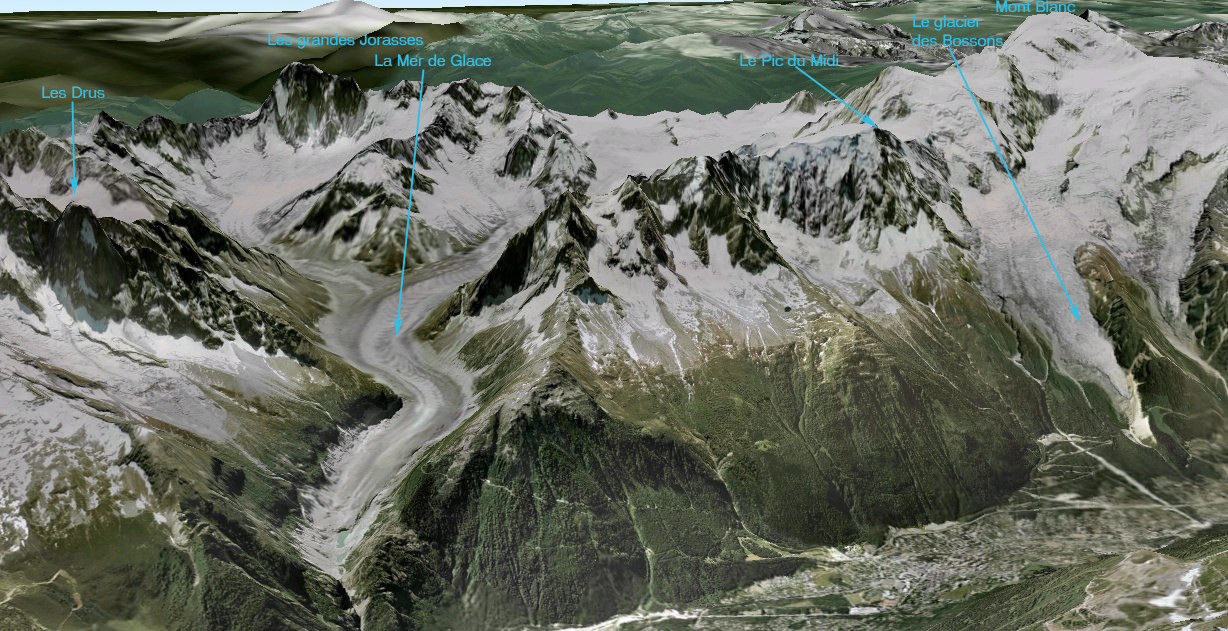 Mer de glace et le glacier des Bossons