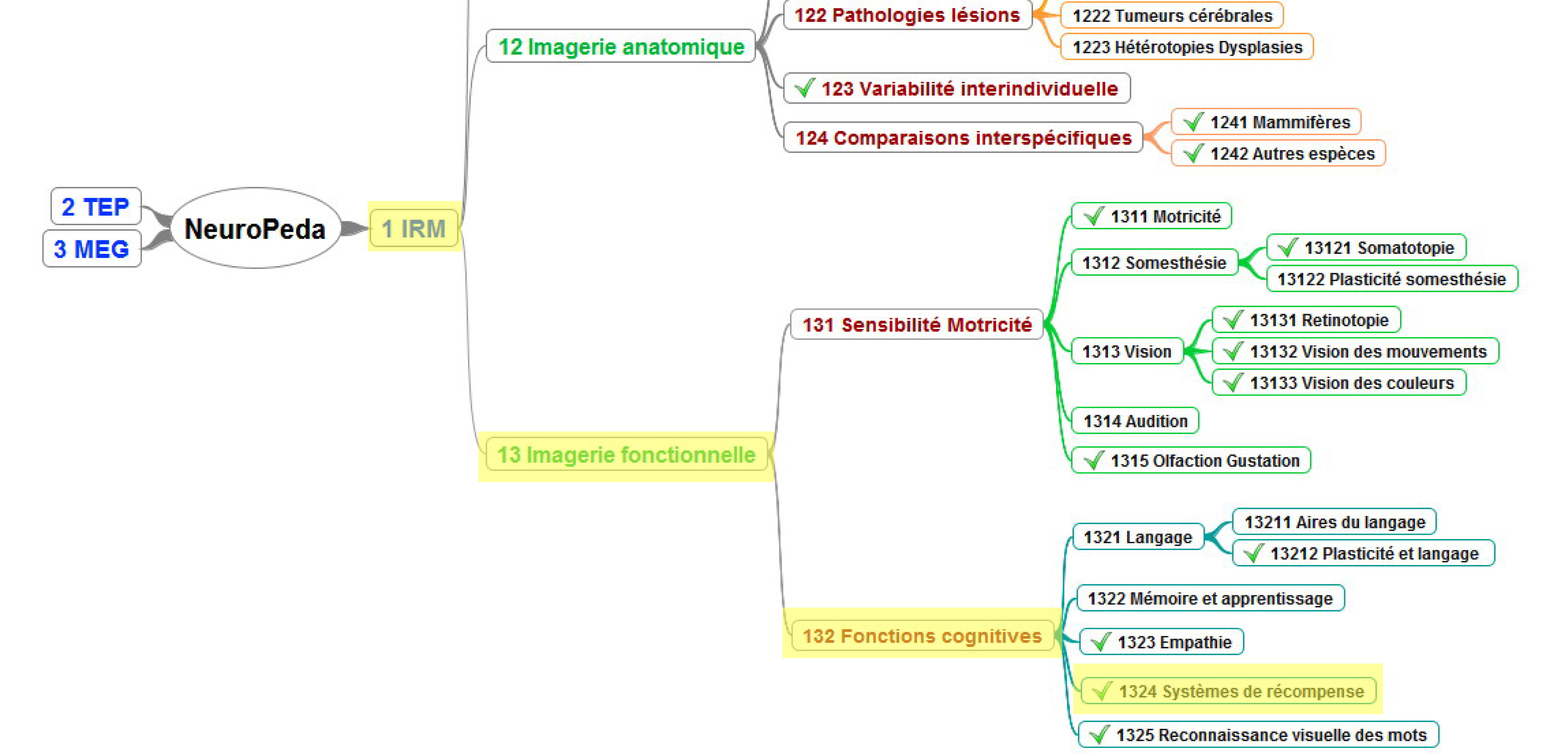 Copie d'écran de l'arborescence de Neuropeda, permettant de visualiser le chemin d'accès aux images du dossier "systèmes de récompense"