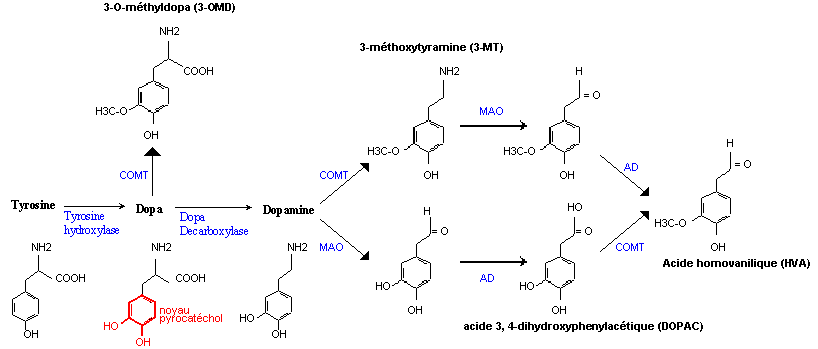 Synthèse et catabolisme de la dopamine
