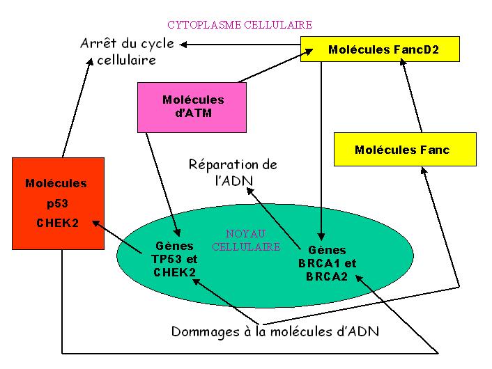 schéma récapitulatif de quelques intéractions géniques en présence de BRCA