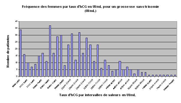 histogramme de fréquence d'intervalles d'hCG dans une population normale en UI